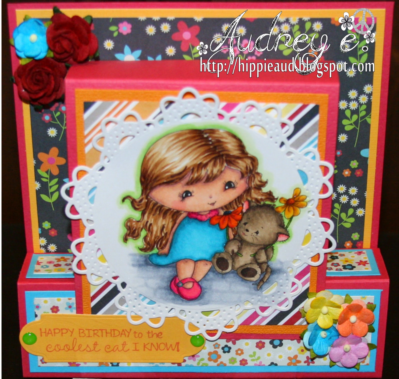 As anyone who has seen many of my recent projects, you may have noticed that I have been doing a lot more fancy folds. I was at the point where I was starting to think all my cards were looking very similar, and that took away a bit of my mojo. So, I decided to get on Pinterest and any other website I could find and get some inspiration! This particular fold was found at Joanna Sheen shop. It is called a zig zag 4 panel card. I chose papers from Jillie Bean. Image and sentiment cut with Marianne dies. Stickers are Jolee's Boutique and sentiment is from Craftin' Desert Divas.